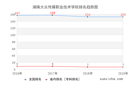 2016-2019湖南大众传媒职业技术学院排名趋势图