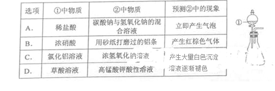 13.用右图所示装置进行下列实验:将①中溶液滴入②中,预测的现象与实际相符的是