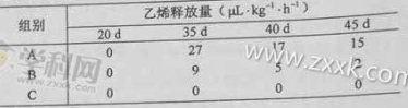 (2)三组果实中,成熟最早的是组,其原因是。如果在35天时采摘A组与B组果实,在常温下储存时间较长的应是组。