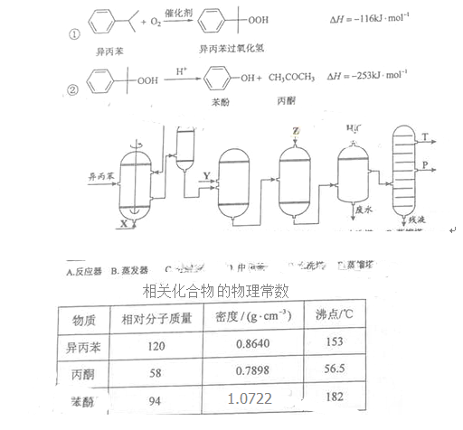 苯酚和丙酮都是重要的化工原料,工业上课用异丙苯氧化法生产苯酚和丙酮,其反应和工艺流程示意图如下: