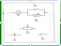 待测电压表(量程3V,内阻约为3000欧),电阻箱R0(最大阻值为99999.9欧),滑动变阻器R1(最大阻值100欧,额定电压2A),电源E(电动势6V,内阻不计),开关两个,导线若干