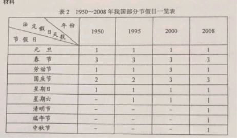 表二能够反映我国节假日变化的多种趋势,指出其中一种变化趋势并说明形成的历史原因。