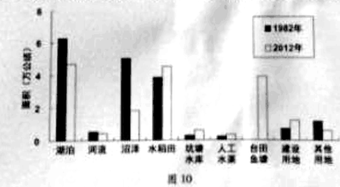 材料二 南四湖及周边地区1982年与2012年各景观类型面积统计图(图10)