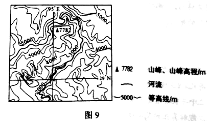 近年来,滑雪、登山、徒步等户外活动渐成一种休闲和时尚的生活方式。几位户外运动爱好者拟于8月前往图9所示区域进行峡谷徒步旅游。