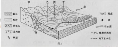 B、丙村比丁村土层深厚 D、丁村比丙村地下水埋藏浅