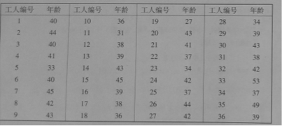 (1) 用分成抽样法从36名工人中抽取容量为9的样本,且在第一分段里用随机抽样法抽到的年龄数据为44,列出样本的年龄数据;