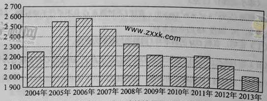 (3)根据下面给出的2004年至2013年我国二氧化硫排放量(单位:万吨)柱形图。以下结论不正确的是