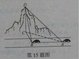 15.如图,一辆汽车在一条水平的公路上向正西行驶,到A处时测得公路北侧一山顶D在西偏北