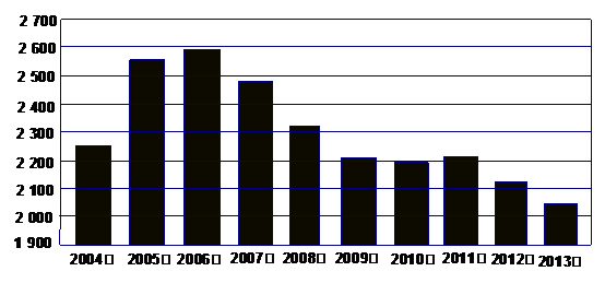 (3) 根据下面给出的2004年至2013年我国二氧化硫年排放量(单位:万吨)柱形图,以下结论不正确的是.