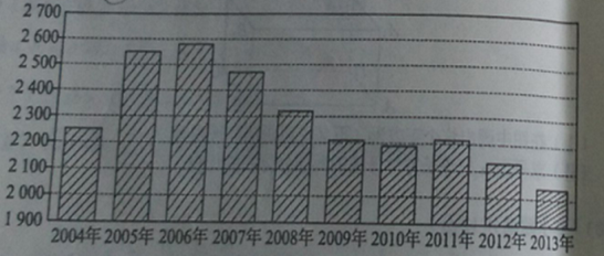 3. 根据下面给出的2004年至2013年我国二氧化碳年排放量(单位:万吨)柱形图,以下结论中不正确的是